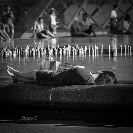 Keywords: girl pyramids louver fountain relax people outdoors