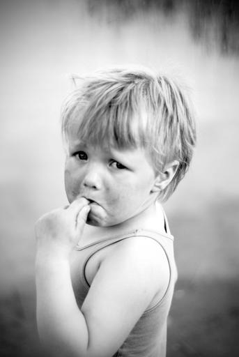 Keywords: girl sad outdoors children summer portrait black and white