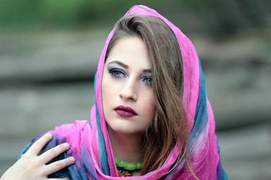 Keywords: girl scarf cover oriental blue eyes coloring beauty