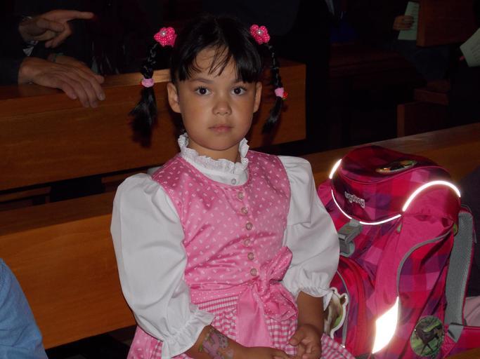 Keywords: girl schoolgirl first day of school child cute dirndl sweet small