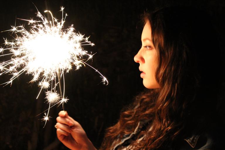 Keywords: girl sparkler fireworks holiday flame brown hair