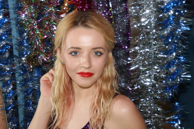 Keywords: girl tinsel holidays shine christmas blonde portrait