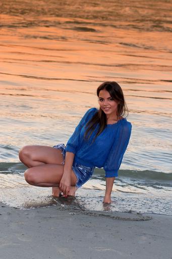 Keywords: girl water heart sand waves beauty sensual in the evening brunette