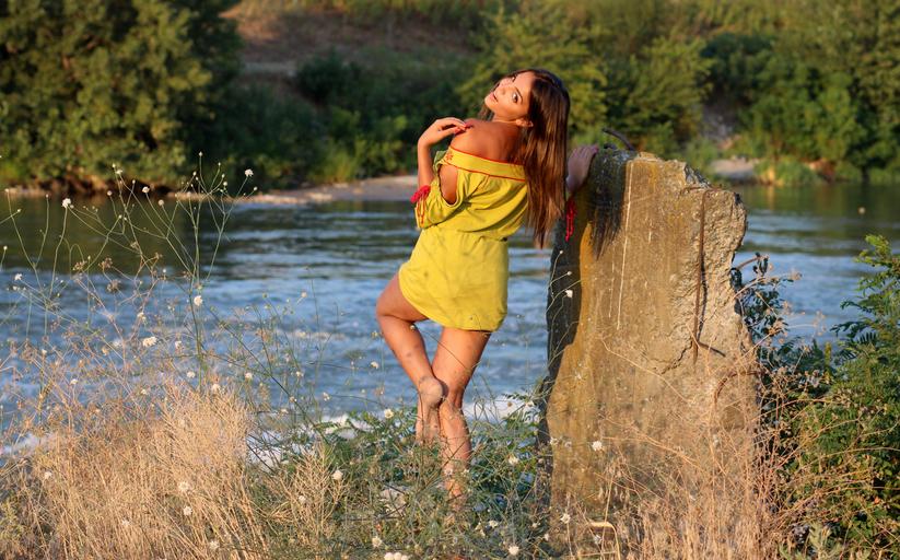 Keywords: girl water rock vegetation summer wild beauty sensual