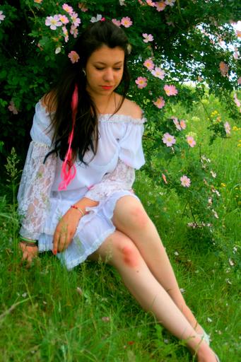 Keywords: girl white dress wild rose beauty nature