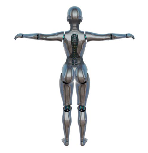 Keywords: girl woman back robot cyborg android robotics future artificial intelligence blue silver isolated sci-fi science fiction