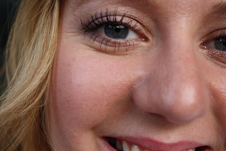 Keywords: girl woman female smile happy eye eyelashes blonde face model age laugh lines