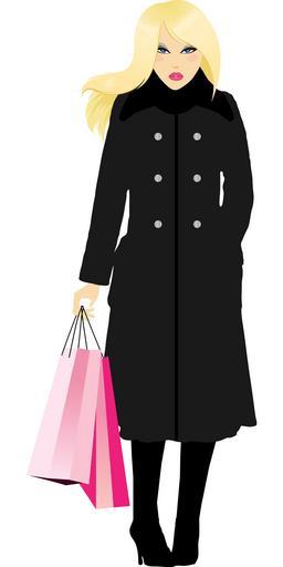 Keywords: girl woman lady female shopping shopping bags black coat clip-art