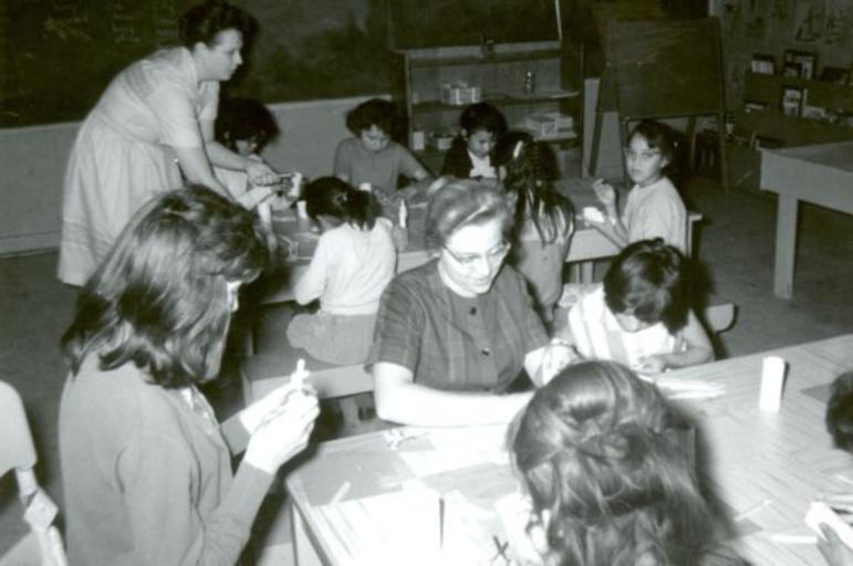 | Keywords: doris lauterbach dorislauterbach betty kauffman bettykauffman marlboro girls club marlborogirlsclub marlboro youth center marlboroyouthcenter mennonite board of missions mennonite mission network voluntary service alberta marlboro mennoniteboardofmissionsmennonitemissionnetworkvoluntaryservicealbertamarlboro Caption: April, 1964. Marlboro, Alberta. Doris Lauterbach and Betty Kauffman 'cutting and pasting' with the Marlboro Girls Club which meets alternate Saturdays at the Marlboro Youth Center. (Girls are in grades 4 - 9). Citation: Mennonite Board of Missions. Photographs. Marlboro, Alberta Voluntary Service. 1963. IV-10-7.2 Box 1 Folder 20 Photo 13. Mennonite Church USA Archives - Goshen. Goshen, Indiana. Caption: April, 1964. Marlboro, Alberta. Doris Lauterbach and Betty Kauffman 'cutting and pasting' with the Marlboro Girls Club which meets alternate Saturdays at the Marlboro Youth Center. (Girls are in grades 4 - 9). Citation: Mennonite Board of Missions. Photographs. Marlboro, Alberta Voluntary Service. 1963. IV-10-7.2 Box 1 Folder 20 Photo 13. Mennonite Church USA Archives - Goshen. Goshen, Indiana. |