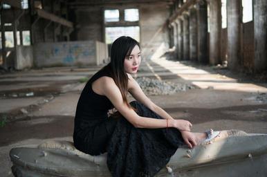 Keywords: girls female women wearing black skirt ruins of women