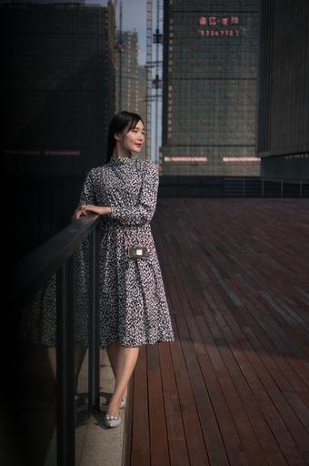 Keywords: girls female woman floral skirt dress asia people model urban background