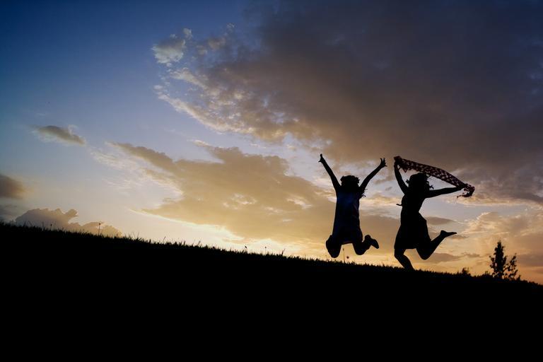 Keywords: girls jumping sunset silhouettes sunrise dusk women happy joy summer freedom