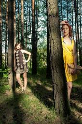 Keywords: girls summer sun friends stroll forest trees shadow evening sunset nature orange