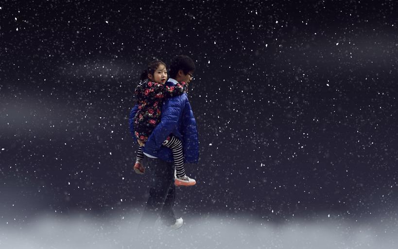 Keywords: girls uncle snow family loving arms tired help me like winter cold