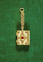 Keywords: Giulio Romano - Miniature Manuscript Used as a Pendant - Walters W444 - Closed.jpg ca 1550 High Renaissance gold vellum enamel ruby folio cm 2 1 8 accession number W 444 6483 Henry Walters Baltimore after 1895 mode of acquisition unknown Walters Art Museum Henry Walters Acquired by Henry Walters after 1895 World of Wonder The Walters Art Gallery Baltimore 1971-1972 Jewelry - Ancient to Modern The Walters Art Gallery Baltimore 1979-1980 Illuminated Manuscripts Masterpieces in Miniature The Walters Art Gallery Baltimore 1984-1985 The Art of Fine Binding in the Renaissance The Walters Art Gallery Baltimore 1993 Covered in Meaning Book Bindings from The Walters The Walters Art Gallery Baltimore 1997-1998 The Closed Book Seven Short Stories The Walters Art Museum Baltimore 2002 The Closed Book Seven Short Stories The Walters Art Museum Baltimore 2005 Shrunken Treasures Miniaturization in Books and Art The Walters Art Museum Baltimore 2009 place of origin Rome Italy Walters Art Museum license 3D Medieval book covers Treasure bindings Renaissance jewellery Media contributed by the Walters Art Museum needs artist review Walters MS W444 - Miniature manuscript-pendant |