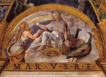 Keywords: Giulio Romano - Psyche Appealing in Vain to Juno - WGA09574.jpg Artwork Creator Giulio Romano between 1526 1528 Fresco Institution Sala di Psyche Palazzo del Tè Mantua object history credit line accession number WGA link 9574 http //www wga hu/art/g/giulio/1pala_te/psyche/3west3 jpg http //www wga hu/html/g/giulio/1pala_te/psyche/3west3 html PD-old-100 painting mythological Italian 1501-1550 Frescos by Giulio Romano Psyche Appealing in Vain to Juno Sala di Psiche Palazzo del Tè Mantua 1520s mythological paintings WGA form painting WGA type mythological WGA School Italian WGA time period 1501-1550 Hera in post-antique paintings 1520s frescos in Italy Chariots in paintings Peacocks in paintings Paintings with Latin inscriptions Iuno Renaissance paintings of birds Females with peacocks in art 1520s paintings from Italy Mythological paintings in Italy |