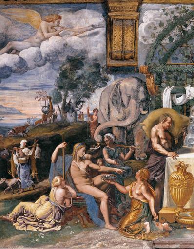 Keywords: Giulio Romano - Tribute to Apollo - WGA09562.jpg Artwork Creator Giulio Romano between 1526 1528 Fresco Institution Sala di Psyche Palazzo del Tè Mantua object history credit line accession number WGA link 9562 http //www wga hu/art/g/giulio/1pala_te/psyche/1south1 jpg http //www wga hu/html/g/giulio/1pala_te/psyche/1south1 html painting mythological Italian 1501-1550 PD-old-100 Frescos by Giulio Romano Tribute to Apollo Sala di Psiche Palazzo del Tè Mantua 1520s mythological paintings WGA form painting WGA type mythological WGA School Italian WGA time period 1501-1550 Paintings of elephants Mythological figures on clouds Music-making angels Paintings of vases Mythological figures in nature Paintings of people in nature 16th-century landscape paintings 1520s frescos in Italy Details of frescos Mythological paintings in Italy Paintings of Apollo |