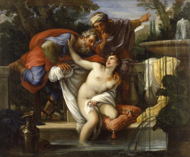 | Keywords: Giuseppe Bartolomeo Chiari - Susannah and the Elders - Walters 371880.jpg Walters Art Museum artwork Q18748573 Creator Giuseppe Bartolomeo Chiari The biblical book of Daniel tells of Susanna a married woman who is spied upon by two old judges while bathing in her garden They attempt to force themselves upon her saying that if she does not submit they will accuse her of adultery With Daniel's assistance Susanna's innocence is established and the two elders are put to death This painting depicts the unhappy woman as she tries to escape the advances and gazes of the men The focus on her body testifies to her innocence and virtue as truth was often symbolized by a nude woman but was also meant to appeal to male patrons The soft luminous coloring is characteristic of the late Roman baroque style Zeri Italian paintings in the Walters Art Gallery 334 459-460 ca 1700 1727 late Baroque Oil on canvas langswitch bemalte Fläche Painted surface cm 67 3 81 6 accession number 37 1880 5833 Don Marcello Massarenti Collection Rome date and mode of acquisition unknown 1881 catalogue no 211 1897 catalogue no 216 as Cagnacci Henry Walters city Baltimore Walters Art Museum Henry Walters Acquired by Henry Walters with the Massarenti Collection 1902 Hot Dry Men; Cold Wet Women Williams College Museum of Art Williamstown 1993 Going for Baroque The Walters Art Gallery Baltimore 1995-1996 Hot Dry Men Cold Wet Women The Theory for Humors in Western European Art 1575-1700 Joslyn Art Museum Omaha; Arkansas Arts Center Little Rock; The John and Mable Ringling Museum of Art Sarasota 1997-1998 place of origin Rome Italy Walters Art Museum license 2D Baroque paintings in the Walters Art Museum Giuseppe Bartolomeo Chiari Paintings of Susanna and the Elders Media contributed by the Walters Art Museum needs category review |