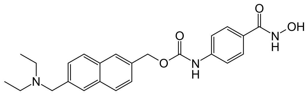 | Keywords: Givinostat structure.svg validSVG Skeletal formula of givinostat Created using http //www acdlabs com/download/chemsk html ACD/ChemSketch 12 0 and Inkscape Optimized with vim Own work after cite journal World Health Organization International Nonproprietary Names for Pharmaceutical Substances INN Recommended INN List 63 WHO Drug Information 24 1 58 “9 2010 http //www who int/medicines/publications/druginformation/innlists/RL63 pdf and cite journal Thaler F Varasi M Colombo A et al Synthesis and biological characterization of amidopropenyl hydroxamates as HDAC inhibitors ChemMedChem 5 8 1359 “72 2010 August 20572281 10 1002/cmdc 201000166 2010-09-15 Fvasconcellos Hydroxamic acids Orphan drugs Histone deacetylase inhibitors |