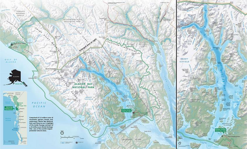 | Keywords: Glacier Bay National Park official park brochure map.jpg Glacier Bay National Park Alaska United States from the official park brochure page 2 with an enlarged detail map of the bay on the right side Original maps edited to remove majority of the brochure text and place the maps side-by-side in a rectangular format with a thin black line separating them 2016-01-01 http //www nps gov/glba/planyourvisit/upload/Complete 20brochure 20two 20sides pdf U S National Park Service website brochure http //www nps gov/glba/planyourvisit/brochures htm webpage with the original PDF file link U S National Park Service Public domain - U S government other versions PD-USGov Maps of national parks in Alaska Glacier Bay National Park Uploaded with UploadWizard Travel maps of Alaska Maps of glaciers of Alaska |