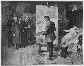 Keywords: Glaspalast 1888 128.jpg 127 129 Mathias Schmid Feuerbeschau Glaspalast München 1888 Mathias Schmid Studios in art Painters at work Artist and model in art