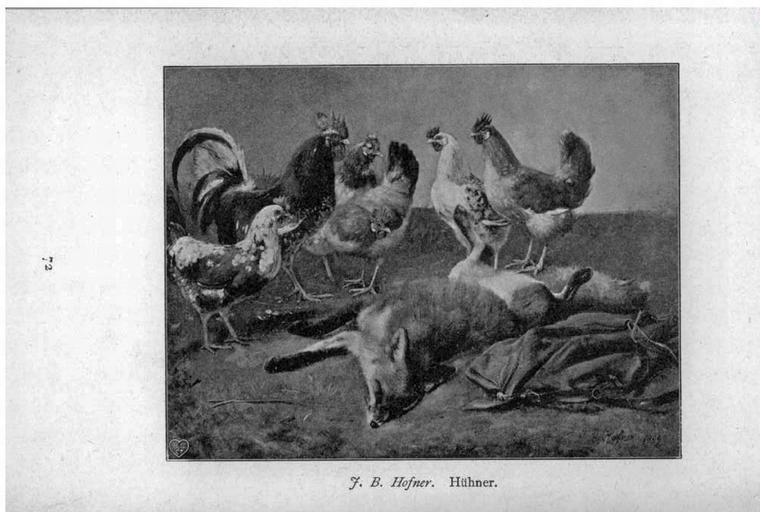Keywords: Glaspalast München 1899 072.jpg 071 073 J B Hofner Hühner Glaspalast München 1899 Paintings of foxes Chickens in art Dead foxes