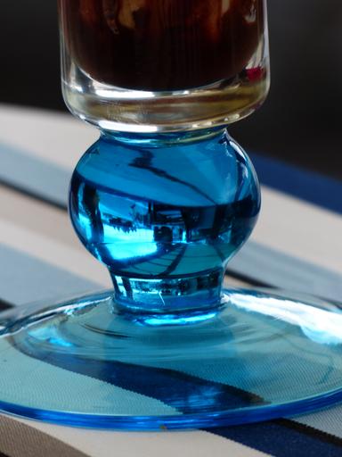 Keywords: glass blue ice cream sundae glass base foot floor stand
