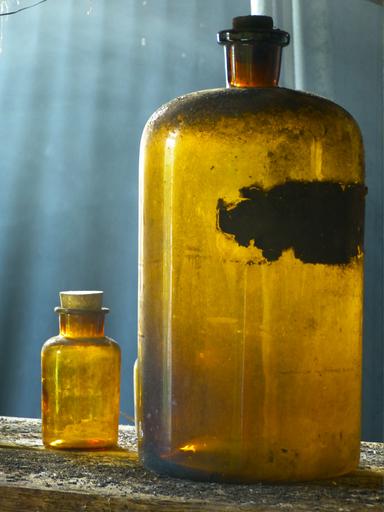 Keywords: glass bottle old pharmacy bottle transparent decoration brown back light