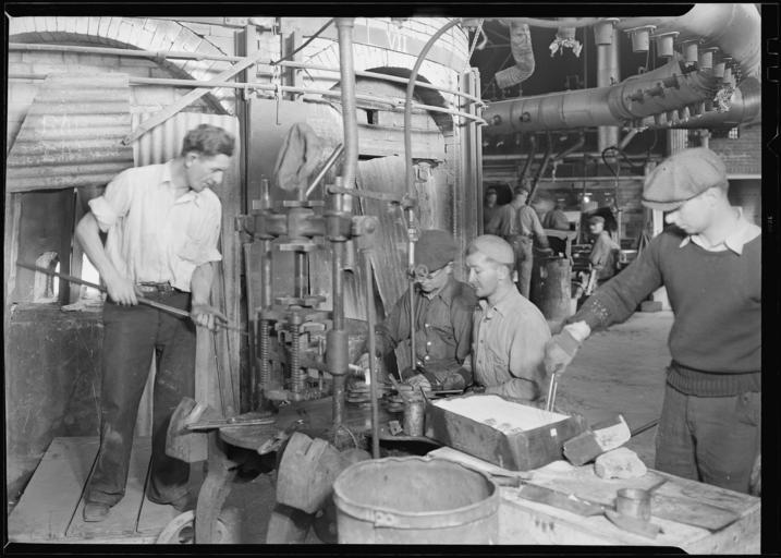 | Keywords: nara:arcid=518641 u.s. national archives usnationalarchives lewis hine lewishine 1937 millville new jersey newjersey the great depression thegreatdepression blackandwhite monochrome black and white Original Caption: Millville, New Jersey - Glass bottles. Pressing and shaping in T. C. Wheaton Co, March 1937 U.S. National Archives’ Local Identifier: 69-RP-414 Photographer: Hine, Lewis Subjects: The New Deal Tennessee Valley Authority Works Progress Administration Work Portraits The Great Depression Persistent URL: research.archives.gov/description/518641 Repository: Still Picture Records Section, Special Media Archives Services Division (NWCS-S), National Archives at College Park, 8601 Adelphi Road, College Park, MD, 20740-6001. For information about ordering reproductions of photographs held by the Still Picture Unit, visit: www.archives.gov/research/order/still-pictures.html Reproductions may be ordered via an independent vendor. NARA maintains a list of vendors at www.archives.gov/research/order/vendors-photos-maps-dc.html Access Restrictions: Unrestricted Use Restrictions: Unrestricted Original Caption: Millville, New Jersey - Glass bottles. Pressing and shaping in T. C. Wheaton Co, March 1937 U.S. National Archives’ Local Identifier: 69-RP-414 Photographer: Hine, Lewis Subjects: The New Deal Tennessee Valley Authority Works Progress Administration Work Portraits The Great Depression Persistent URL: research.archives.gov/description/518641 Repository: Still Picture Records Section, Special Media Archives Services Division (NWCS-S), National Archives at College Park, 8601 Adelphi Road, College Park, MD, 20740-6001. For information about ordering reproductions of photographs held by the Still Picture Unit, visit: www.archives.gov/research/order/still-pictures.html Reproductions may be ordered via an independent vendor. NARA maintains a list of vendors at www.archives.gov/research/order/vendors-photos-maps-dc.html Access Restrictions: Unrestricted Use Restrictions: Unrestricted |