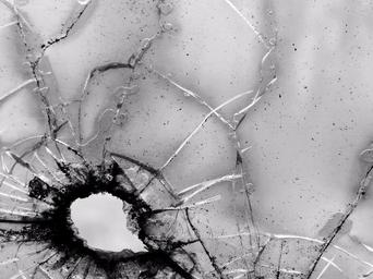 Keywords: glass bullet hole crack illustrative evidence themed target shatter round art black and white