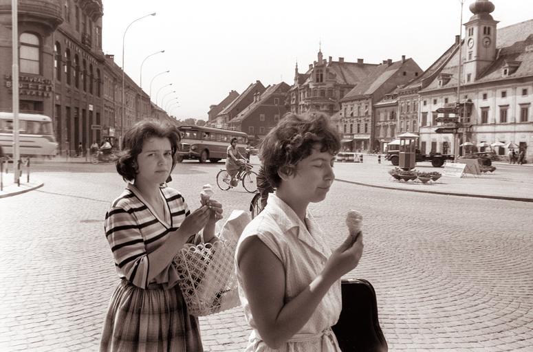 Keywords: Glavni trg in mladenki s sladoledom 1961.jpg Glavni trg in mladenki s sladoledom 507312 1961-06-21 creator Dragiša Modrinjak PD-Slovenia 1961 in Slovenia Historical black and white photographs of Maribor Main Square Maribor Pedestrians in Maribor Cycling in Maribor Historical images of buses in Maribor Historical images of trucks in Maribor Maribor Town Hall People eating ice cream 1960s fashion Clothing of Slovenia Photographs by Dragiša Modrinjak Street lights in Maribor Ice cream in Slovenia |