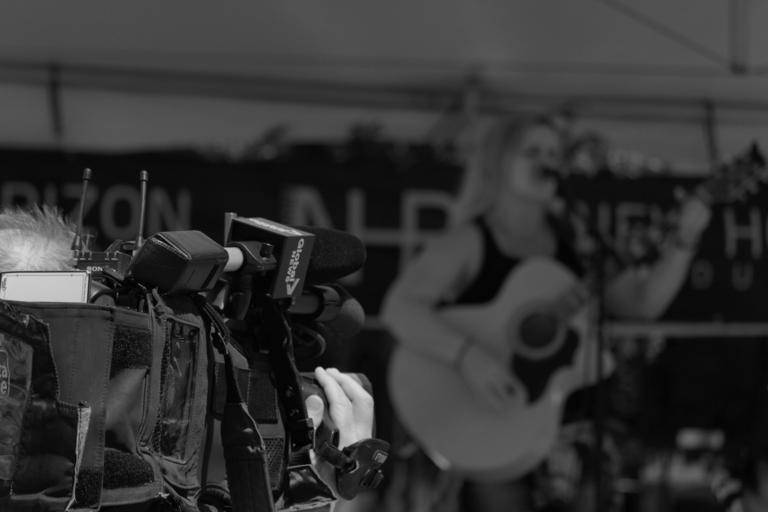 Keywords: blackandwhite black white bw monochrome street streetphotography blockparty downtown summer contrasts depth guitar musician camera news pov canada britishcolumbia bc okanagan kelowna people