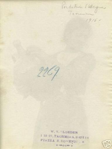 | Keywords: Gloeden, Wilhelm von (1856-1931) - n. 2269 v - Portatrice d'acqua.jpg Wilhelm von Gloeden 1856 “1931 Retro della foto numero 2269 Portatrice d'acqua Porta scritto Portatrice d'acqua Taormina 1916 La data del 1916 è anomala perché a causa della guerra Gloeden era dovuto tornare in Germania Wilhelm von Gloeden 1856 “1931 Reverse of picture number 2269 A woman carrying water Taormina 1916 The date is odd since by that year Gloeden had to flee Italy because of the outburst of the war Online auction site Creator Wilhelm von Gloeden s 1890 This print 1916 PD-old-auto-1923 1931 <gallery> File Gloeden Wilhem von 1856-1931 - n 2269 - Portatrice d'acqua 1 jpg 2269 recto File Gloeden Wilhelm von 1856-1931 - n 2269 v - Portatrice d'acqua jpg 2269 verso File Gloeden Wilhelm von 1856-1931 - n 2270 - da - Sicilia mitica Arcadia - p 67 jpg 2270 File Gloeden Wilhelm von 1856-1931 - n 2271 jpg 2271 File Gloeden Wilhelm von 1856-1931 - n 2271 - Datata 5 Dicembre 1900 - dal sito di San Marco Casa d'aste jpg 2271 </gallery> Reverses by Wilhelm von Gloeden 2269 |