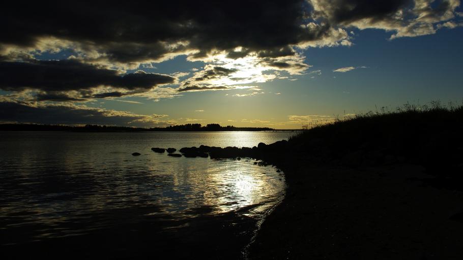 Keywords: gloomily white sea sun heavy clouds evening sunset landscape horizon