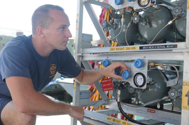 | Keywords: GMTO Navy divers train during Project SEALAB anniversary 110720-N-MN220-366.jpg  en Petty Officer 2nd Class Nick Barna a salvage and repair diver assigned to the Guantanamo Navy Dive Locker listens to air tanks filling while conducting a pre-dive equipment check on the Naval Station Pier July 20 Barna a native of Washington is one of several Navy divers who perform underwater missions in support of Joint Task Force and Naval Station operations JTF Guantanamo provides safe humane legal and transparent care and custody of detainees including those convicted by military commission and those ordered released by a court The JTF conducts intelligence collection analysis and dissemination for the protection of detainees and personnel working in JTF Guantanamo facilities and in support of the War on Terror JTF Guantanamo provides support to the Office of military Commissions to law enforcement and to war crimes investigations The JTF conducts planning for and on order responds to Caribbean mass migration operations 2011-07-20 Petty Officer 2nd Class Joseph Ebalo https //www dvidshub net/image/430966 110720-N-MN220-366 2011-07-21 14 21 GUANTANAMO BAY CU PD-USGov-Military-Navy Guantanamo Bay Images from DoD uploaded by Fæ |