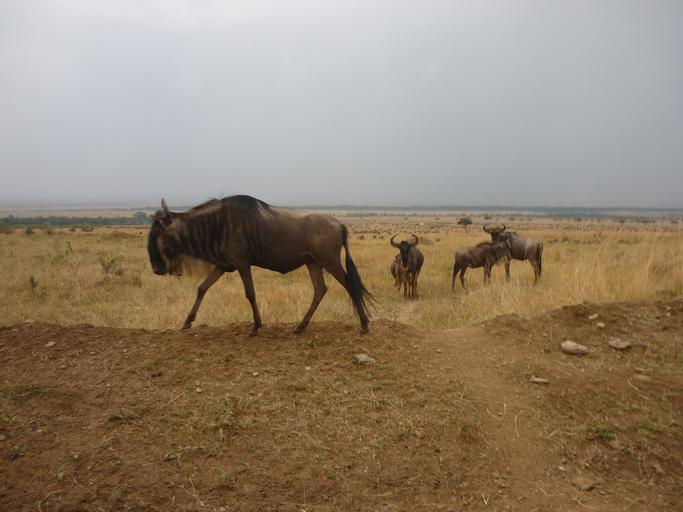 Keywords: gnu flock savannah masai mara kenya africa