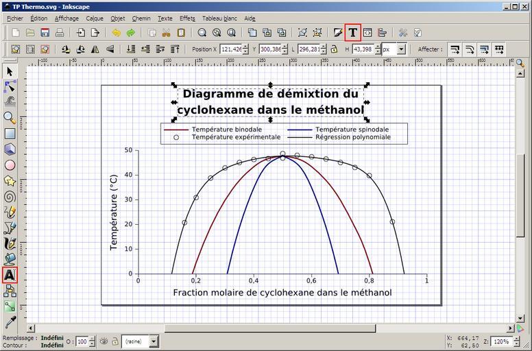 | Keywords: Gnumeric tutorial for chemists Inkscape-fr.png Created with Gnumeric Screenshot of the french version of Inkscape 0 46 running on Windows XP showing the interface of the software Intended for use on the French Graphic Lab Gnumeric tutorial for chemists The graph comes from Gnumeric and shows the binodal and spinodal temperature curves of a non-miscible cyclohexane-methanol mixture Capture d'écran d'Inkscape 0 46 en français sous Windows XP présentant l'interface du logiciel Conçu pour un didacticiel sur l ™utilisation de Gnumeric par les chimistes Le graphique a été créé sur Gnumeric et montre les courbes de température binodale et spinodale d'une expérience sur la démixtion d'un mélange cyclohexane-méthanol own 2010-06-06 Tachymètre <span class signature-talk >talk</span> free screenshot GPL Other data shown on the screenshot are licensed under these conditions Tachymètre Screenshots for Gnumeric tutorials Screenshots for Inkscape tutorials |