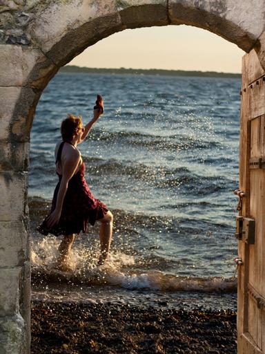 Keywords: goal door freedom joy luck nature sky wooden door castle gate wall gate stone sea woman girl