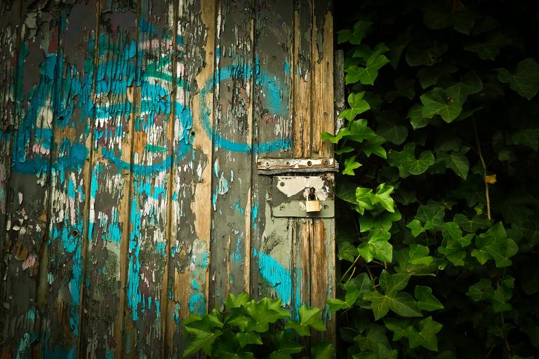 Keywords: goal door old door wood input castle flowers old nostalgia painted color flake nature ivy