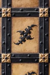 MAKE A MEME View Large Image goal door wood metal brass old access antique input metal bezel gilded painted rivet wrought iron ornament middle ages