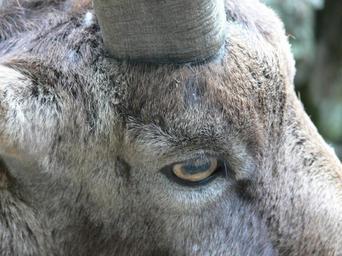 Keywords: goat eye head horns fur close animal wildlife photography herbivores nature livestock paarhufer pasture