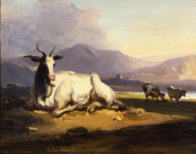 | Keywords: Goat in an Indian landscape.jpg Artwork Creator George Chinnery century 19 oil canvas cm 14 18 accession number object history Christie's 18th April 1986 lot 83; John Mitchell Son; Private Collection U K credit line http //www johnmitchell net/George-Chinnery-London-1774-Macau-1852-goat-sitting-mountainous-river-landscape-with-cattle-beyond-DesktopDefault aspx tabid 6 tabindex 5 objectid 391240 categoryid 10076 John Mitchell Fine Paintings PD-old-100 George Chinnery Paintings of goats | ||||