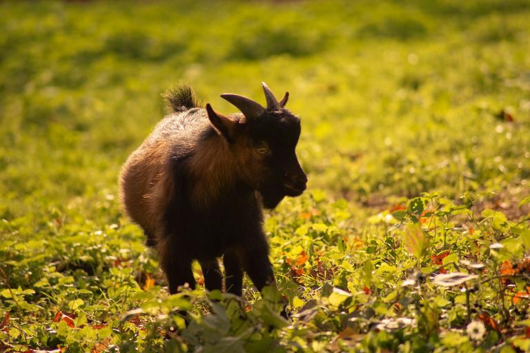 Keywords: goat kid animal mammal livestock young grass outdoor nature meadow farm sunny
