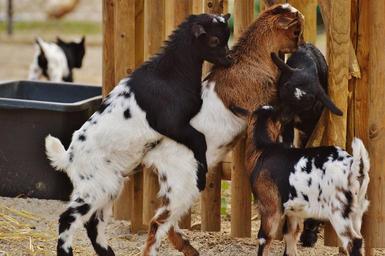 Keywords: goats wildpark poing young animals playful romp cute small young fur quadruped