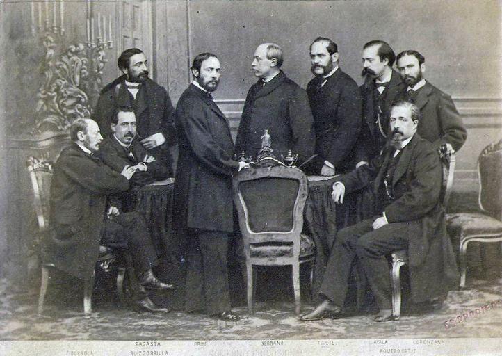 Keywords: Gobierno Provisional 1869 (J.Laurent).jpg Figuerola Ruiz Zorrilla Sagasta Prim Serrano Topete López de Ayala Lorenzana y Romero Ortiz http //laplumaviperina blogspot com es/2013/05/gobierno-provisional-por-un html La pluma viperina 1869 Creator Jean Laurent es De acuerdo con la información contenida en la fuente de http //www bne es/es/Colecciones/Fotografias/index html la página donde aparece se trata de una fotografía de J Laurent fallecido en 1886 Por lo tanto está en el dominio público por antigüedad PD-old-100 People of Spain in 1869 Politics of Spain 19th-century photographs of Spain Sepia photographs of Spain 1869 photographs Laureano Figuerola Manuel Ruiz Zorrilla Práxedes Mateo Sagasta Juan Prim Francisco Serrano Juan Bautista Topete Adelardo López de Ayala Juan Álvarez de Lorenzana Antonio Romero Ortiz Juan Laurent portraits Group photographs Group portraits with 9 persons Files uploaded by Ecemaml ImageNote 1 427 67 39 59 576 441 2 http //el tesorodeoviedo es/index php title Imagen Jal01b jpg Juan Álvarez de Lorenzana y Guerrero ImageNoteEnd 1 ImageNote 2 195 71 56 67 576 441 2 thumb center Juan Prim Prats - 1869 ImageNoteEnd 2 ImageNote 3 269 57 45 61 576 441 2 thumb center Francisco Serrano ImageNoteEnd 3 ImageNote 4 327 54 50 58 576 441 2 thumb center Juan Bautista Topete ImageNoteEnd 4 ImageNote 5 388 58 39 52 576 441 2 thumb center Adelardo López de Ayala - 1867 ImageNoteEnd 5 ImageNote 6 122 64 50 61 576 441 2 thumb center Praxedes Mateo Sagasta - 1898 ImageNoteEnd 6 ImageNote 7 78 134 40 64 576 441 2 thumb center Laureano Figuerola ImageNoteEnd 7 ImageNote 8 121 133 42 62 576 441 2 thumb center Manuel Ruiz Zorilla ImageNoteEnd 8 ImageNote 9 412 123 47 70 576 441 2 Antonio Romero Ortiz ImageNoteEnd 9 ImageNote 10 134 246 89 83 1065 755 2 Laureano Figuerola ImageNoteEnd 10 ImageNote 11 232 221 71 100 1065 755 2 Manuel Ruiz Zorrilla ImageNoteEnd 11 ImageNote 12 237 97 91 85 1065 755 2 Práxedes Mateo Sagasta ImageNoteEnd 12 ImageNote 13 389 103 95 97 1065 755 2 Juan Prim ImageNoteEnd 13 ImageNote 14 519 80 96 108 1065 755 2 Francisco Serrano ImageNoteEnd 14 ImageNote 15 642 72 89 104 1065 755 2 Juan Bautista Topete ImageNoteEnd 15 ImageNote 16 752 77 95 104 1065 755 2 Adelardo López de Ayala ImageNoteEnd 16 ImageNote 17 836 100 87 89 1065 755 2 Juan Álvarez de Lorenzana y Guerrero ImageNoteEnd 17 ImageNote 18 807 209 101 101 1065 755 2 Antonio Romero Ortiz ImageNoteEnd 18 |
