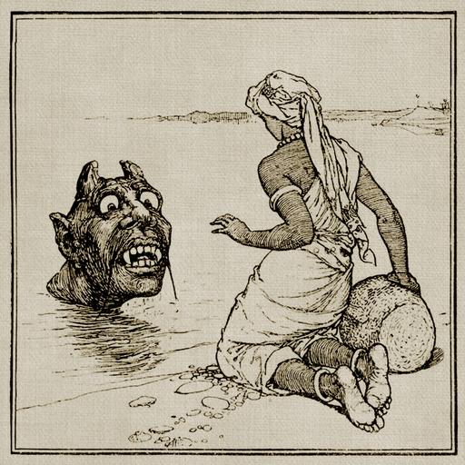 Keywords: goblin ogre water fantasy fairytale river man weird funny character background vintage antique old educational head history drawing symbol line retro silhouette scared scary eyes