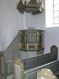 Keywords: Godsted Kirke prædikestol.JPG Prædikestolen i Bregninge Kirke Guldborgsund Kommune Bregninge Kirke ligger imidlertid i en anden af sognets landsbyer Grønnegade Filen er beklageligvis navngivet forkert Billedet er retteligt fra Bregninge Kirke Guldborgsund Kommune og ikke fra Godsted Kirke Bregninge Church Lolland Own 2009-05-23 Erik Damskier Own work all rights released Public domain Bregninge Kirke Guldborgsund Kommune |