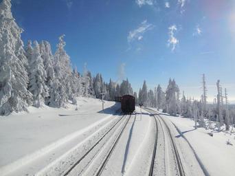 Keywords: Bahnhof Goetheweg im Winter.JPG de Ein Zug der Harzer Schmalspurbahnen auf dem Stumpfgleis des ehemaligen Bahnhofs Goetheweg kurz nach einer Zugkreuzung 2015-02-06 14 41 00 own Gapcf other versions cc-zero Uploaded with UploadWizard Bahnhof Goetheweg |
