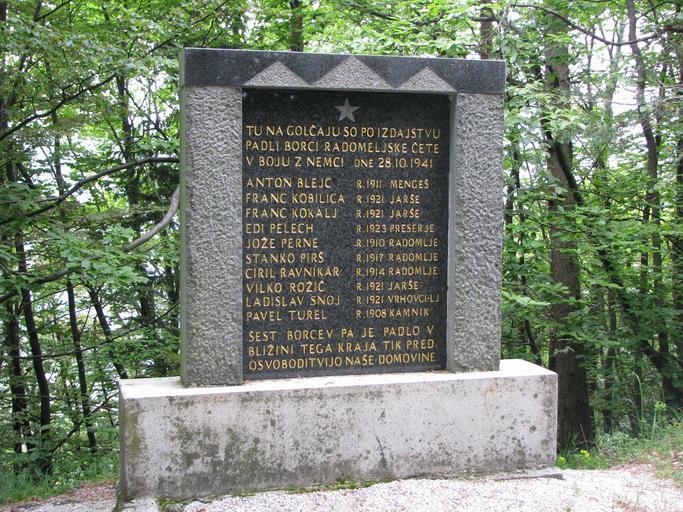 | Keywords: Golčaj - spomenik padlim borcem Radomeljske čete - IMG 3234.JPG Radomeljske čete na Golčaju 2010-05-30 11 12 47 own Romanm 46 170938888889 14 805802777778 12648 cc-zero Uploaded with UploadWizard Monuments to the Slovene Partisans Golčaj Marble plaques 1950 war memorials |