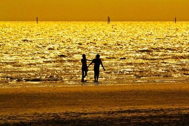 Keywords: gold sea black shadow couple pictures beach hand in hand woman men's evening walk tour romance thailand